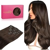WENNALIFE Extensiones Clip Pelo Natural, 50cm 120g 7 Piezas, Castaño Chocolate Extensiones de Clip Natural Extensiones Pelo Remy Extensiones Cabello Postizos Mujer