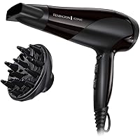 Remington Secador de Pelo Ionic Dry 2200, Iónico, Cabello Sin Encrespamiento, 2200 W, Concentrador y Difusor, 3 Temperaturas, 2 Velocidades, Rejilla Trasera Desmontable, Gancho Para Colgar, D3198
