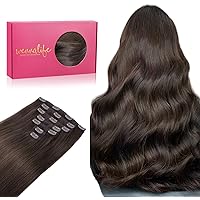 WENNALIFE Extensiones Clip Pelo Natural, 60cm 120g 7 Piezas, Castaño Oscuro Claro Extensiones de Clip Natural Extensiones Pelo Remy Extensiones Cabello Postizos Mujer