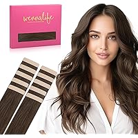 WENNALIFE Extensiones Adhesivas Pelo Natural, Castaño Chocolate 45cm 25g 10 Piezas Extensiones de Remy Pelo Natural Cabello Humano Mechas Pelo Lacio Invisible para Niñas Mujeres Trenzas