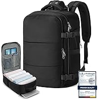 Samfolk Mochila viaje Cabina avion 40x20x25 Mochila viaje 12 Bolsillos Mochilas de viaje para avion de Separado para Zapatos Bolsa de Mano, 20L (Negro, 40x20x25)
